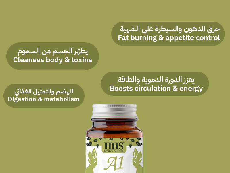 HHS A1 Herbal Supplement is a daily capsule formula made with a blend of botanical ingredients including Garcinia Cambogia, ginger, and cardamom, combined with L-carnitine.